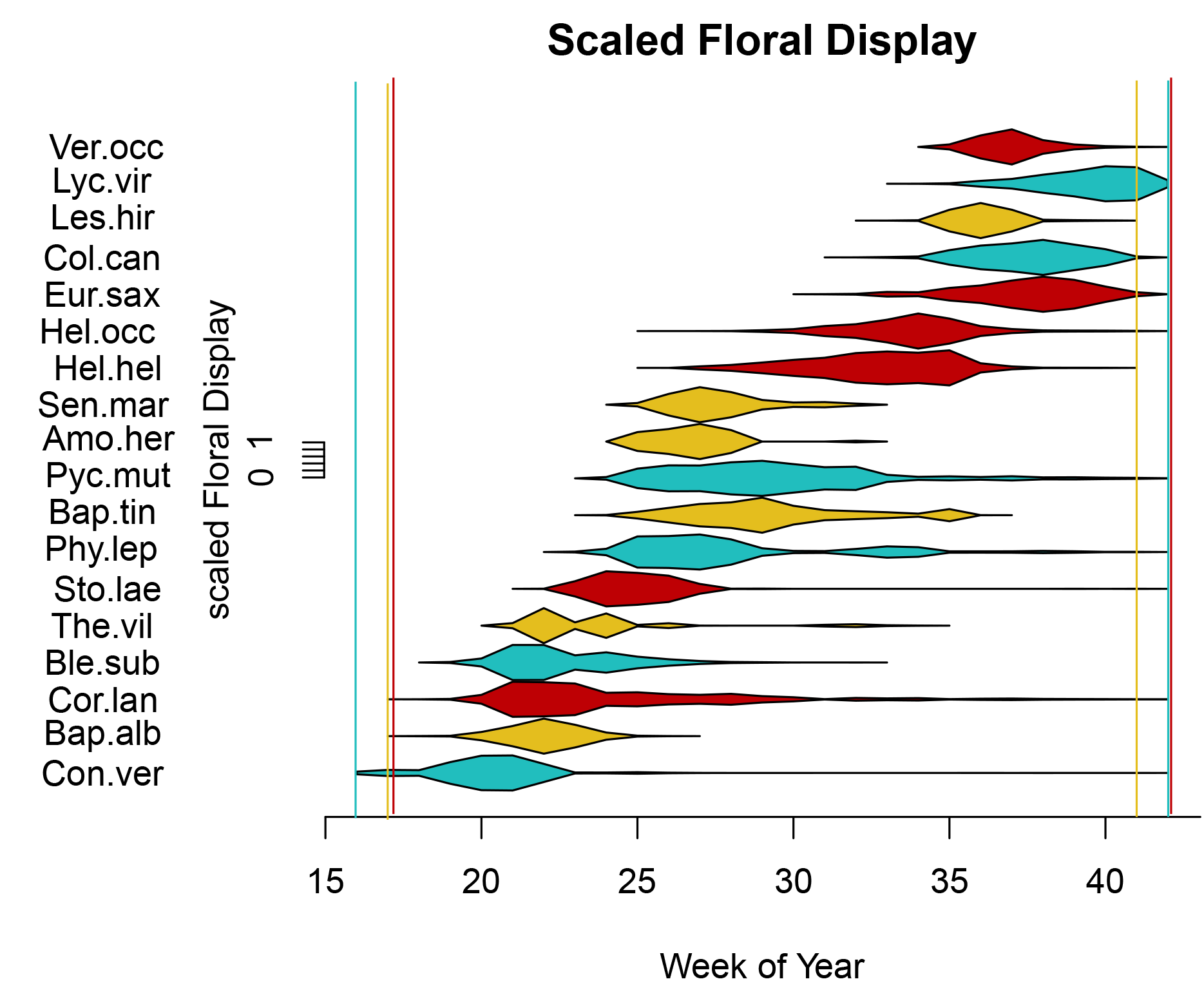We established 8 research plots of 18 perennial species native to Tennessee in the spring of 2022 at the Great Smoky Mountains Institute at Tremont. The plots all contained six plant species and four individuals of each plant species in rows. Two of the plots represented the family Asteraceae, two represented Lamiaceae, and 2 were Fabaceae, with the final two plots comprising two species from each of the three aforementioned plant families. Across the summer of 2022, we visited the plots weekly, weeding and watering the plants to maintain the plots, and collecting data on the flower-visiting insects and the number of flowers each plant species produced each week.